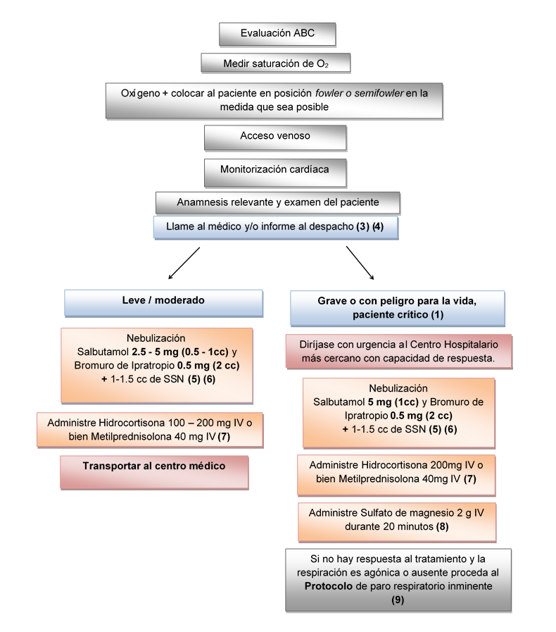 Nota: Se administrará la nebulización durante su traslado a un centro médico. Si el asma es producto de una reacción anafiláctica proceda al protocolo correspondiente.