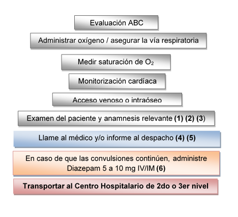 - En caso que no sea posible tener un acceso venoso, se puede inyectar Diazepam por vía intramuscular o intraóseo.