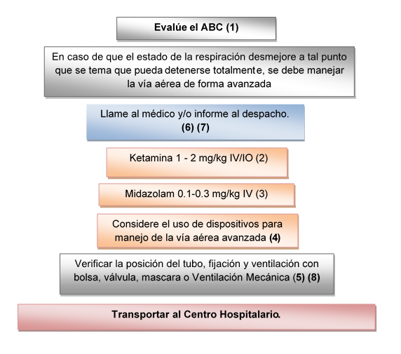 - En ausencia de Midazolam o Ketamina administre Diazepam 5 – 10mg.
