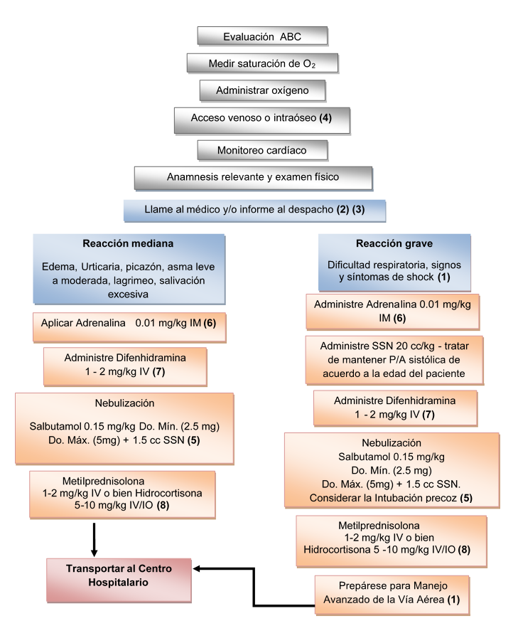 - En ausencia de Difenhidramina considerar el uso de la clorfenamina para pacientes entre 6 a 12 años a dosis de 5mg IM.