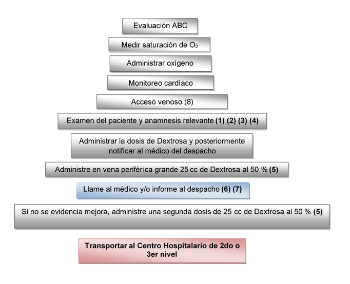 (1) Examen de glucosa capilar: un resultado < 60 mg/dl es evidencia de hipoglucemia asociado a sintomatología adrenérgica y/o neuroglucopénicos.